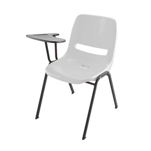 站脚:采用优质铝合金经模具一体压铸成型,表面静电粉末喷涂。 椅背:采用金属框架,面板用多层旋切木皮面压防火板。 椅座:采用优质多层旋切木皮经模具热压成型并面压防火板。 写字板:采用刨花板面压防火板。 书网:采用优质冷拉钢,表面经喷涂处理。 回复机构:采用重力回复机构,永不失效。
